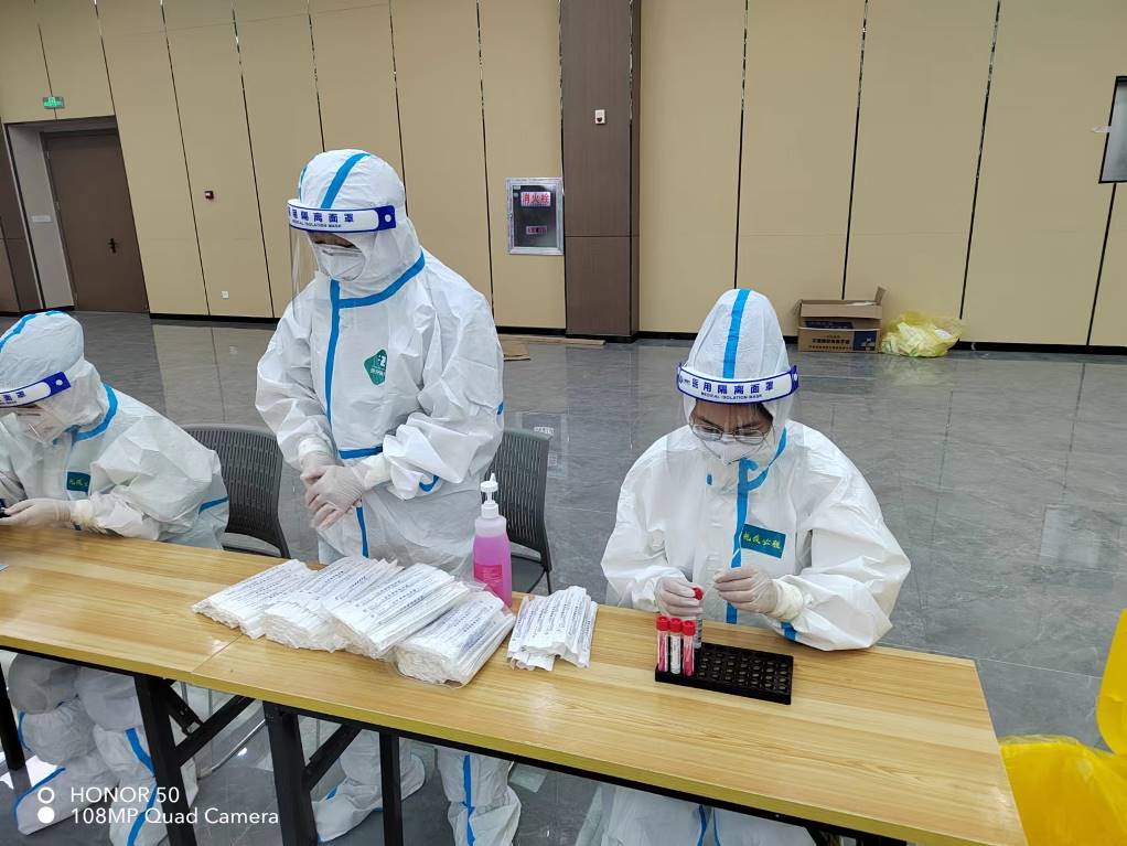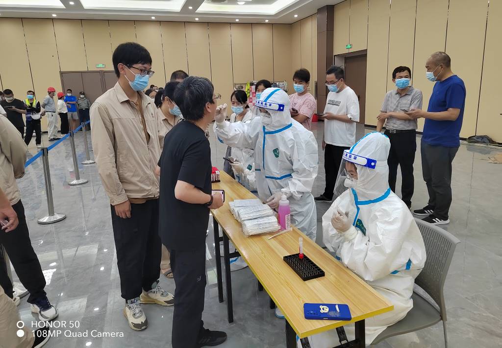 711-715日,興華科技公司防疫人員積極配合徐圩新區防疫組的工作,布置好核酸檢測現場,派出員工作為志愿者協助醫護人員檢測,組織廠區內所有人員有序參加核酸檢測,做到應檢盡檢。